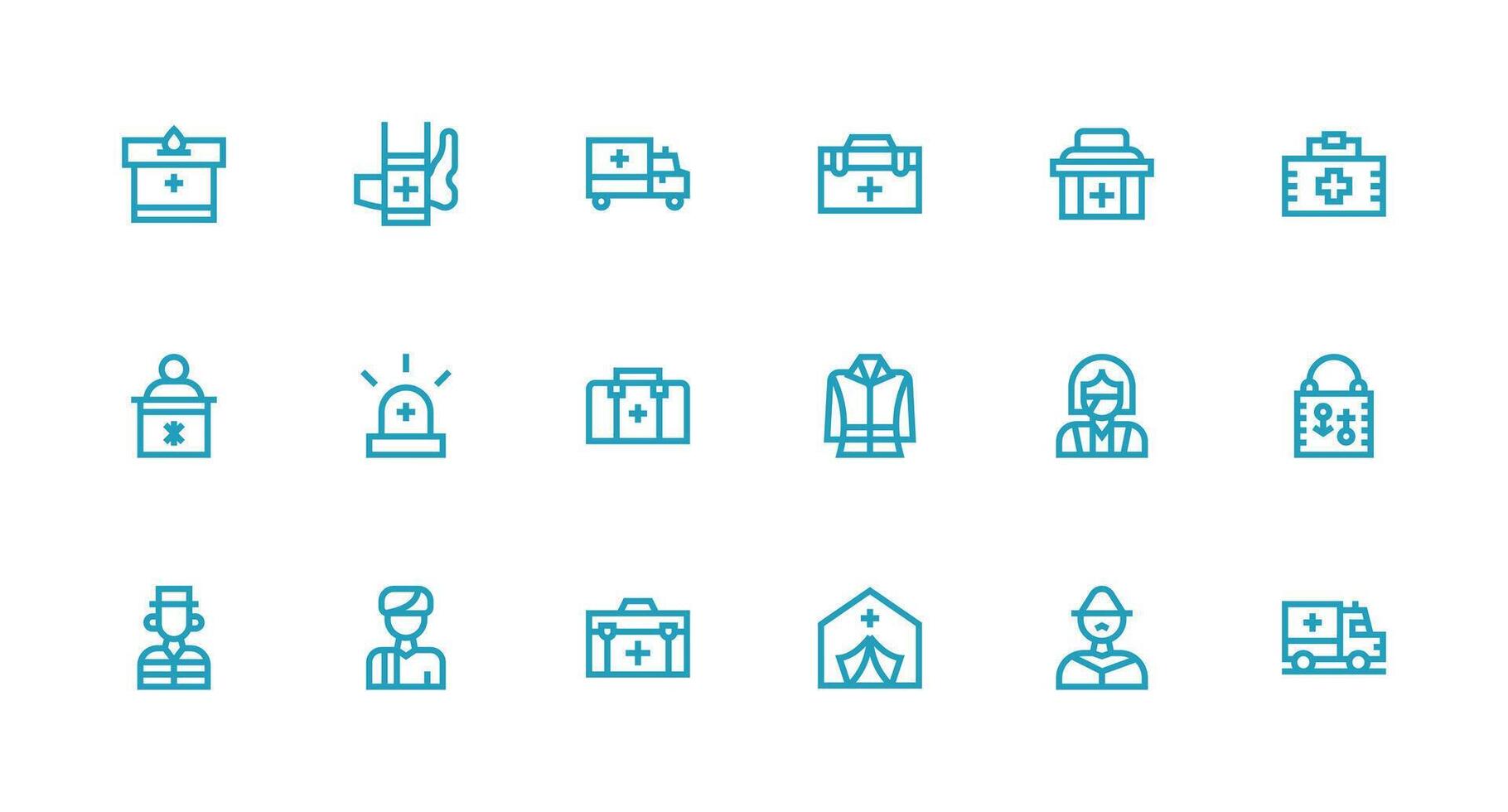 First Responder Icon Collection with 18 Strong Stroke Line Designs Scalable Icons for Cross-Platform Interfaces Free Vector