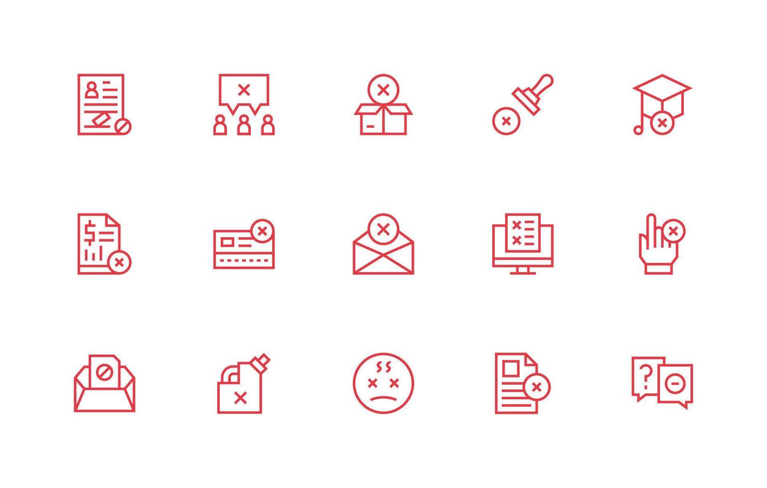 Regular Line Icons from Not Accepted Set with 15 Vectors Icon Pack for Various Themes Free Vector