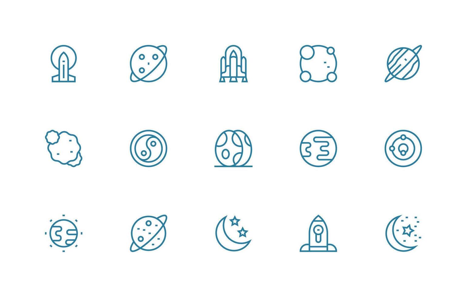 Regular Line Style Universe Icons with 15 Vectors Quick Access Icons for UI Development Free Vector