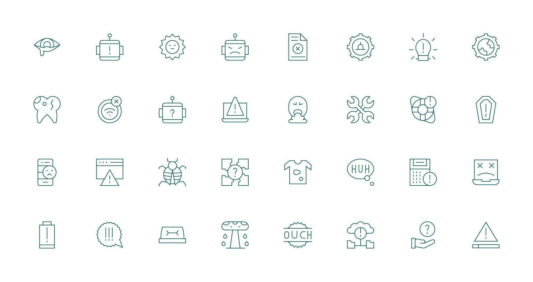 32 Thin Line Vectors for Problem Theme Icon Set for Web Free Vector