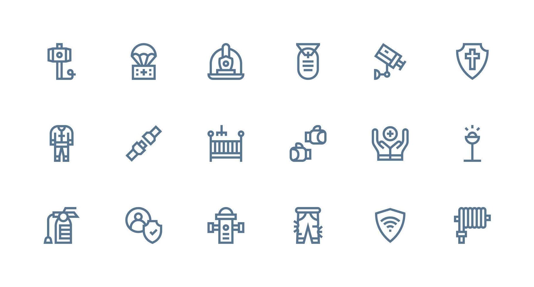 Safety featuring 18 Icons in Strong Stroke Line Design Minimal Icon Set for Interface Projects vector