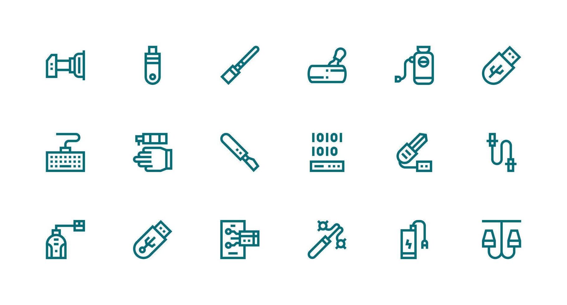 Usb Icon Set with 18 Strong Stroke Line Graphics Scalable Icons for All Themes Free Vector
