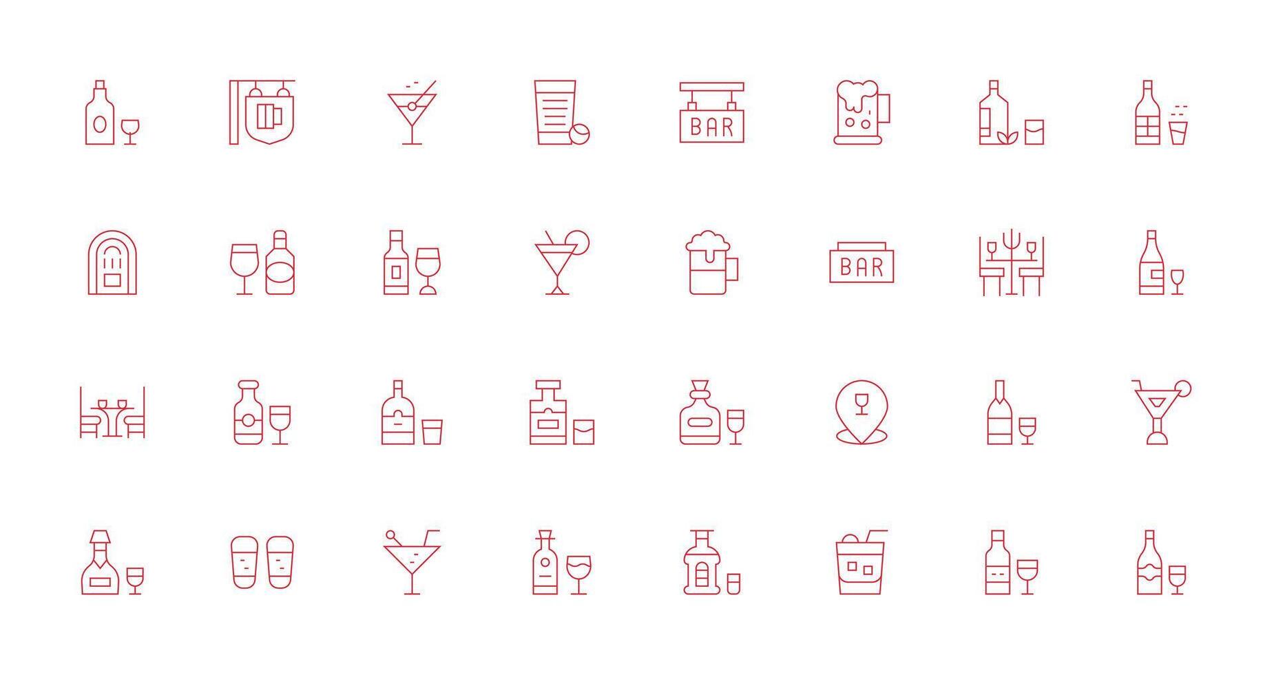 Pub Icon Collection with 32 Thin Line Designs Scalable Icons for Cross-Platform Interfaces vector