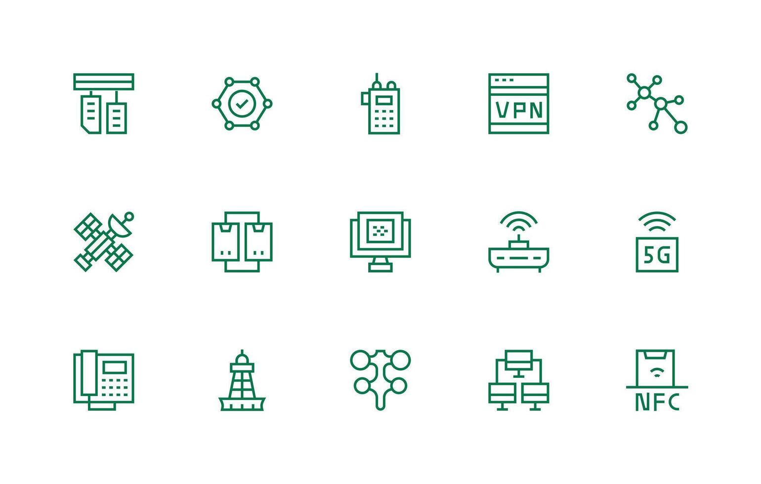 Regular Line Style Data Transmission Icons with 15 Vectors Compact Icon Set