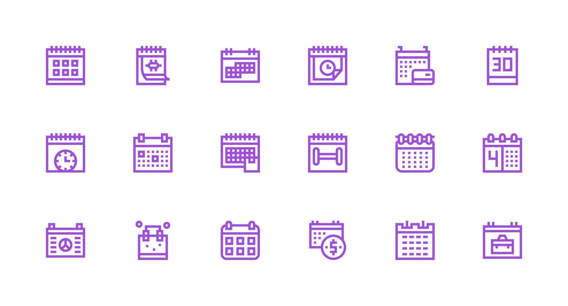 18 Icons for Yearly in Strong Stroke Line Format Sharp Icons for Presentations Free Vector