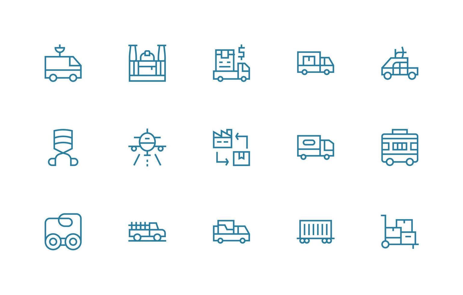 Freight Icon Set with 15 Regular Line Graphics Fully Editable Icon Set for Web vector