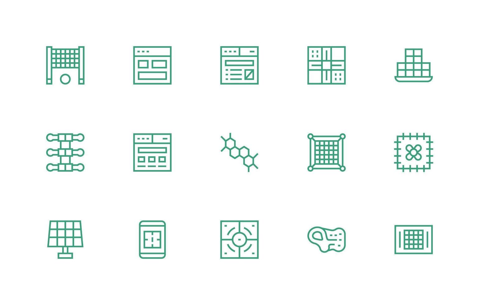 Grid Icon Set with 15 Regular Line Graphics Essential Icon Set for Teams vector