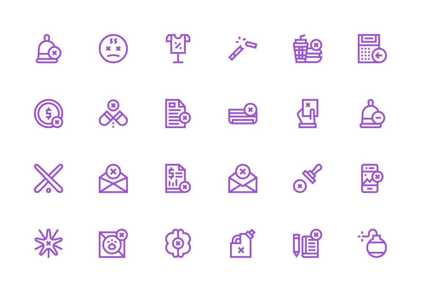 Cancel Icon Set with 24 Thick Line Line Graphics UI and UX Focused Icon Collection Free Vector