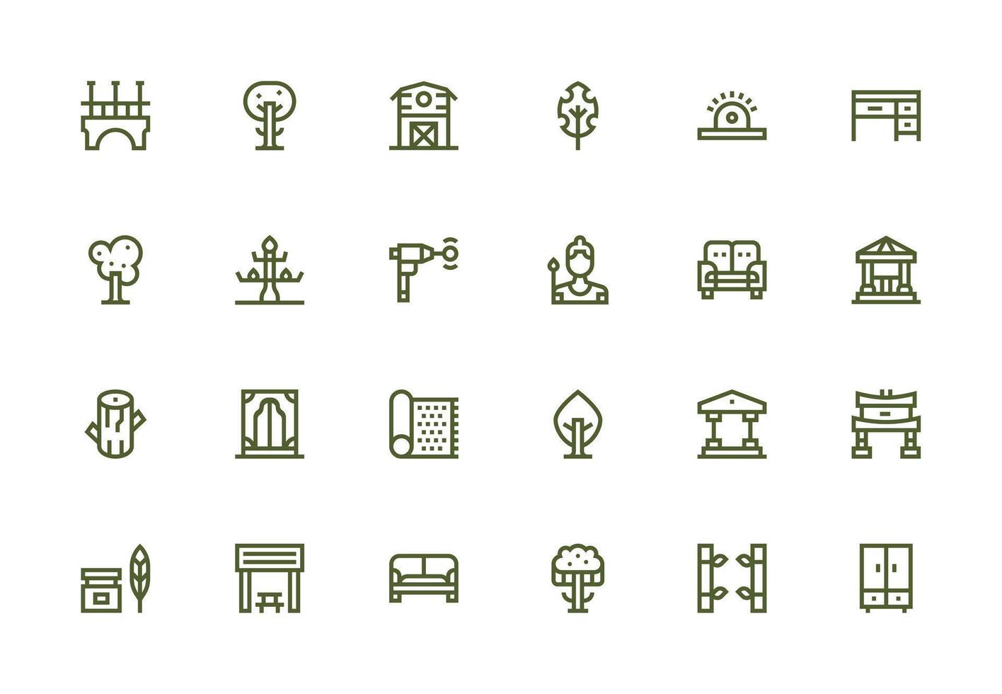 24 Icons for Wood in Thick Line Line Format Clear and Concise Icon Set Collection Free Vector