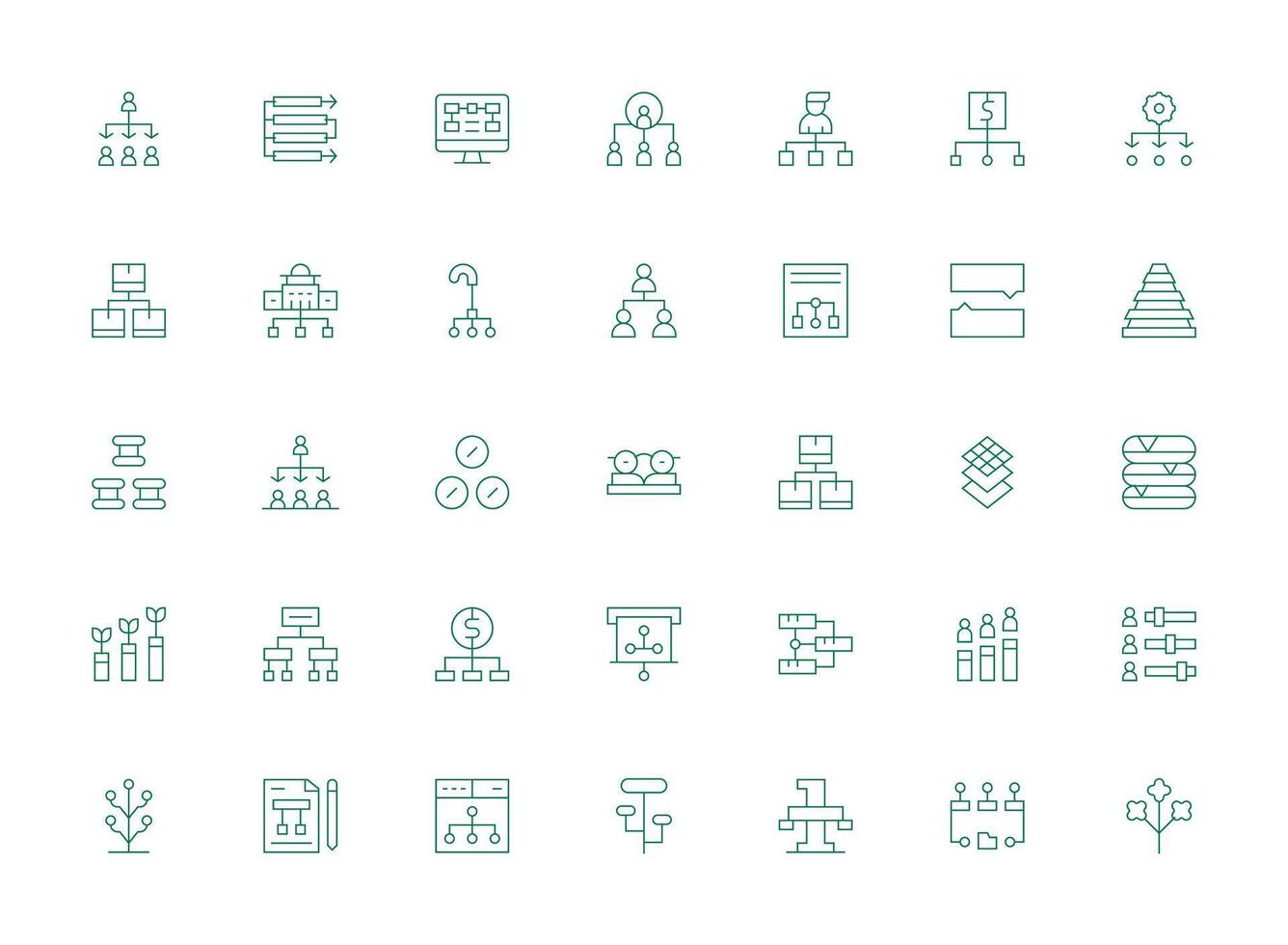 35 Light Line Style Icons from Hierarchy Collection Icon Set for Apps Free Vector