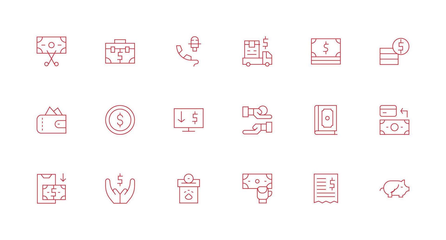 Cash featuring 18 Icons in Minimal Line Design Core Icon Collection for Daily Tasks Free Vector