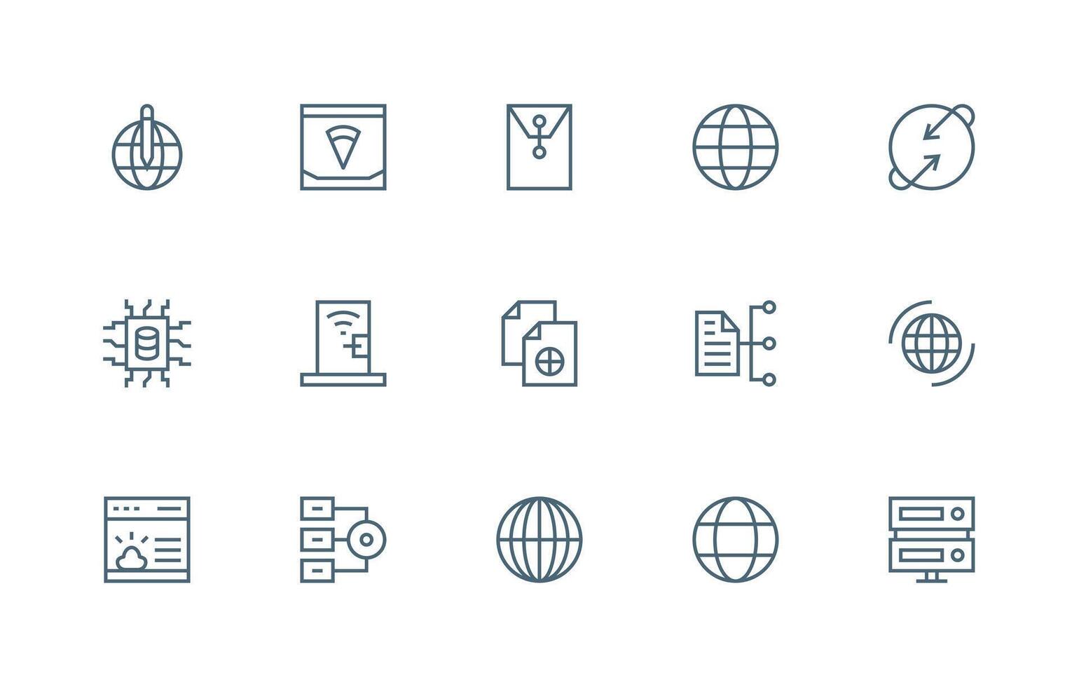Network including 15 Regular Line Illustrations Complete Icon Bundle for Web Design vector
