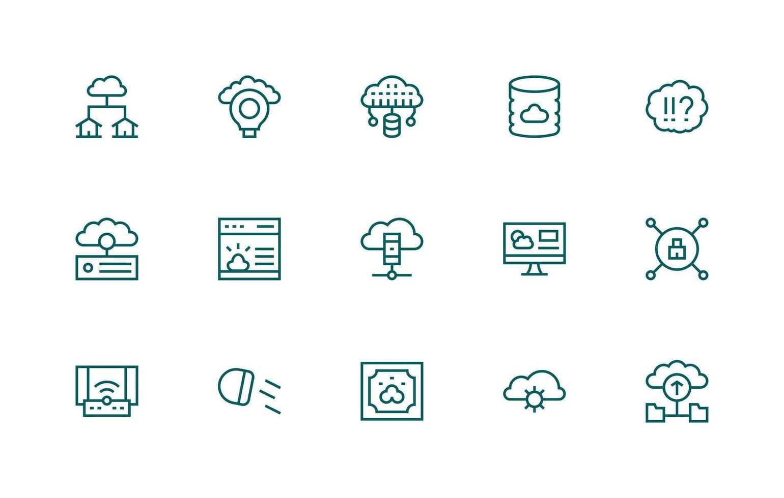 Cloud Computing Set with 15 Regular Line Icons Sharp Icons for Presentations vector