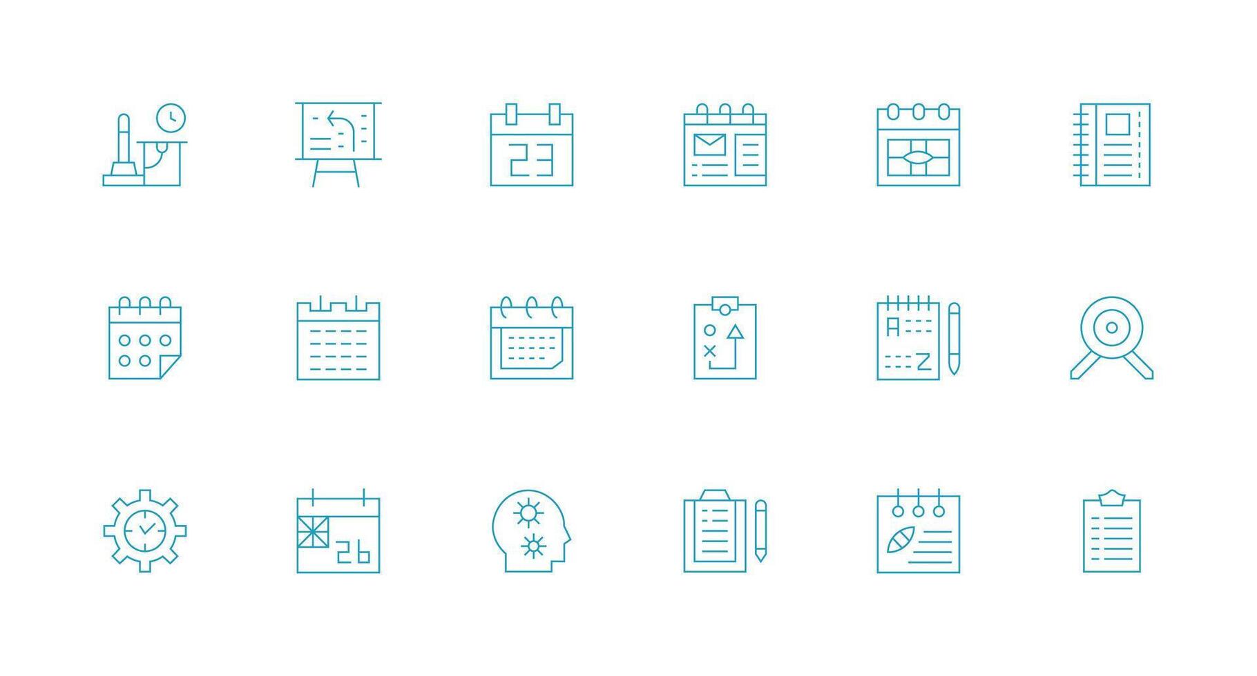 Planning Icon Set with 18 Minimal Line Graphics Minimal Icon Set for Interface Projects vector