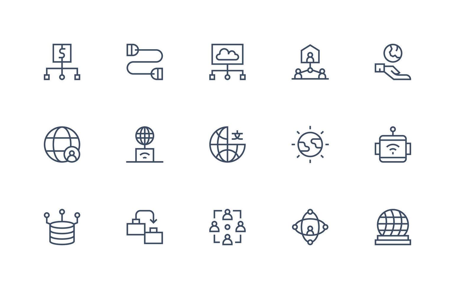 Network Design Icons featuring 15 in Regular Line Style Reusable Icon Set vector