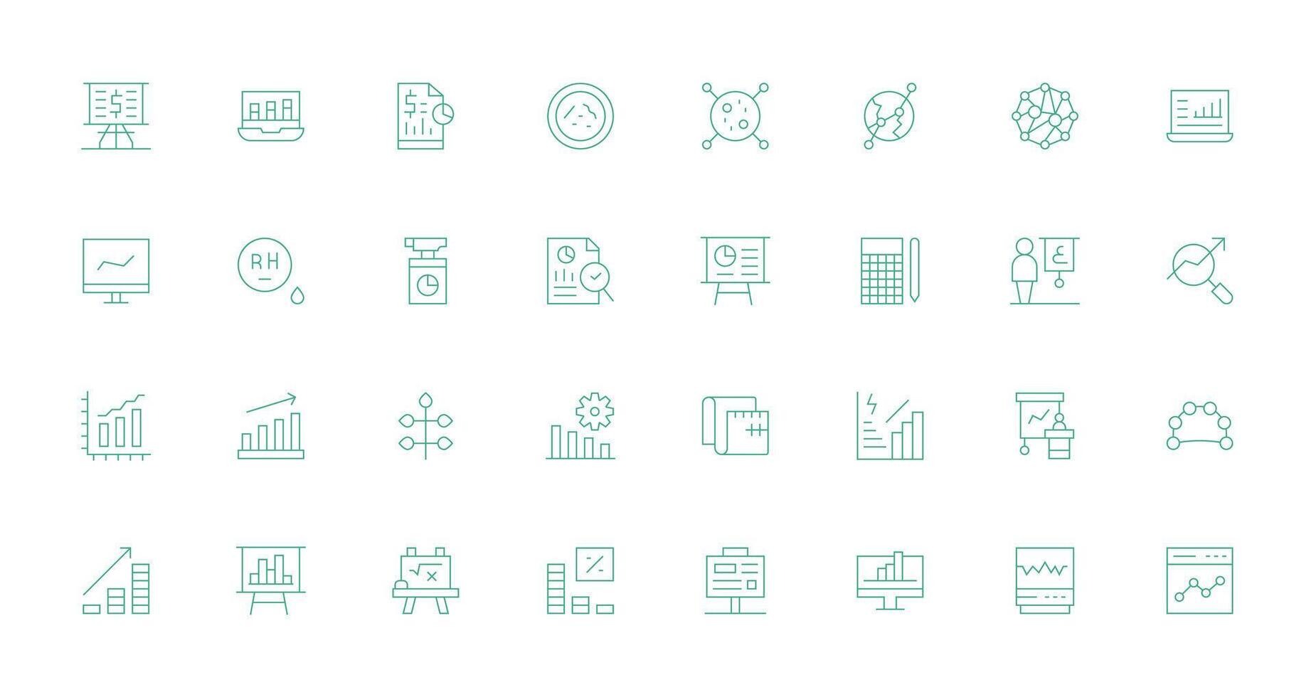 Graph Icon Set with 32 Thin Line Graphics Scalable Icons for Cross-Platform Interfaces vector