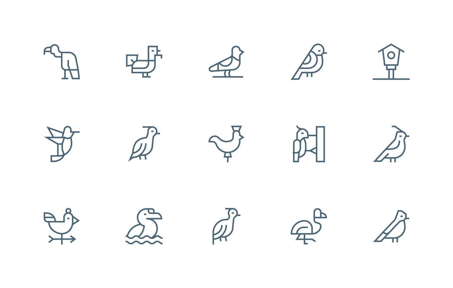 Avian Design Icons featuring 15 in Regular Line Style Scalable Icons for All Themes vector