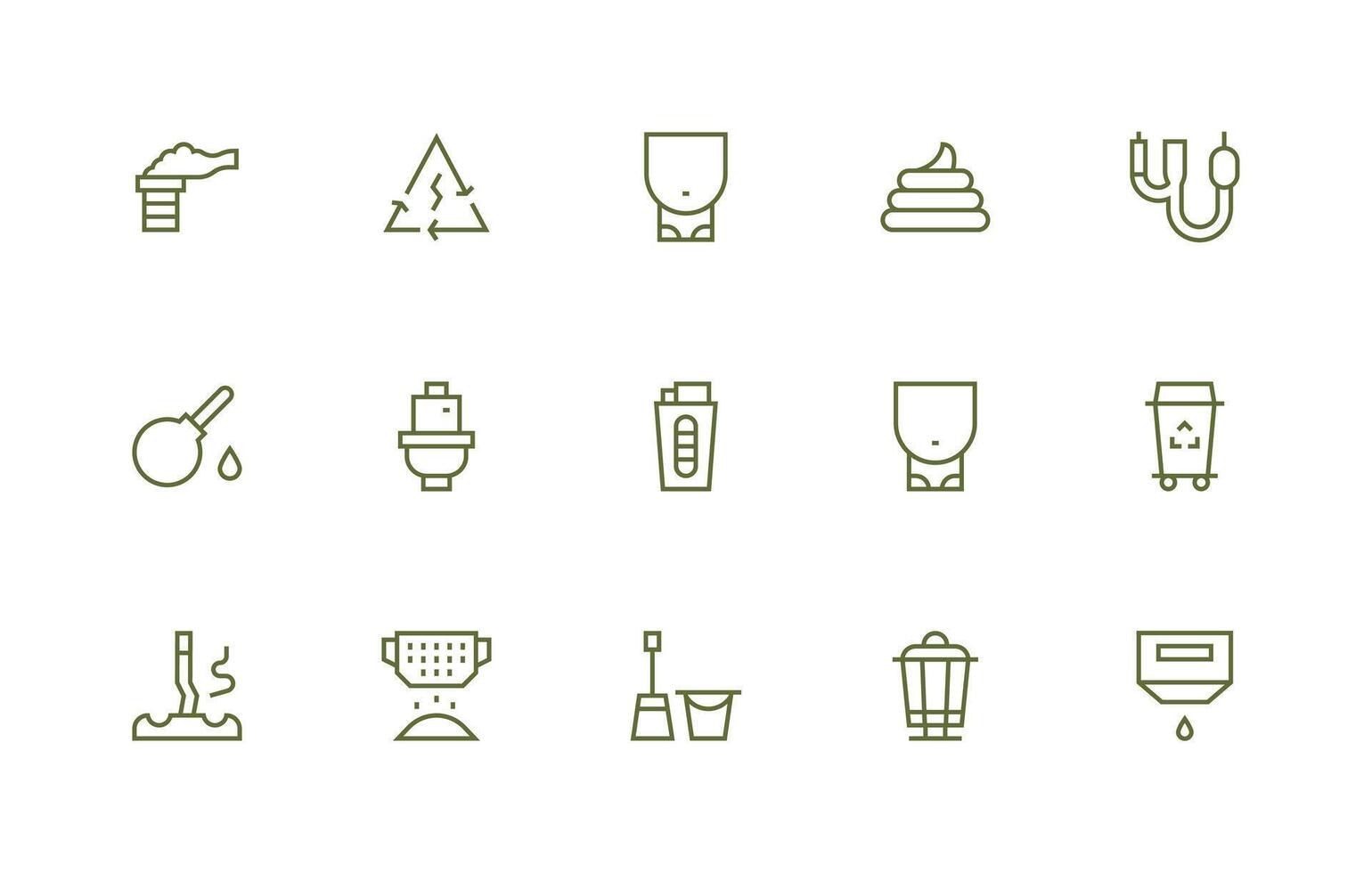 15 Regular Line Style Icons from Waste Collection Clean Icon Collection for Web Use vector