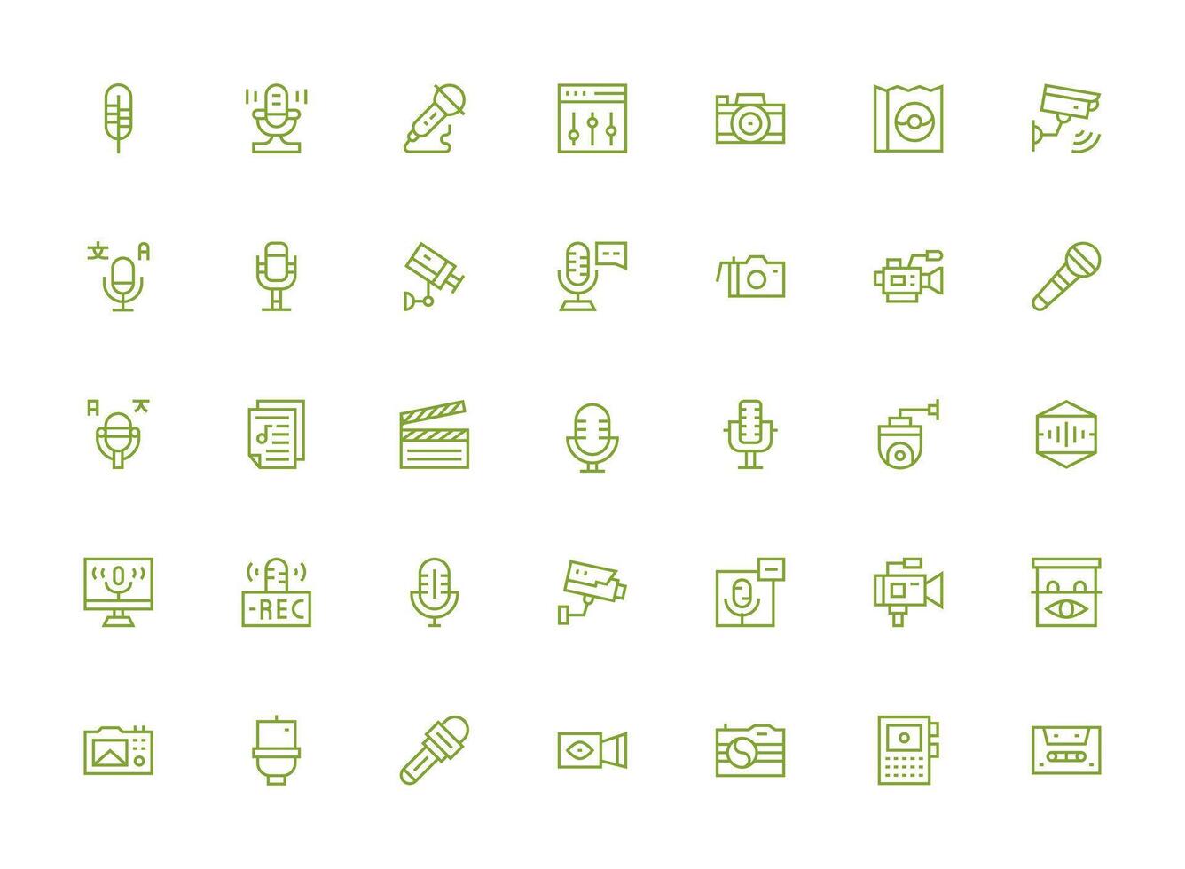 Regular Clean Line Icons from Recording Set with 35 Vectors Flat Icon Set Free Vector