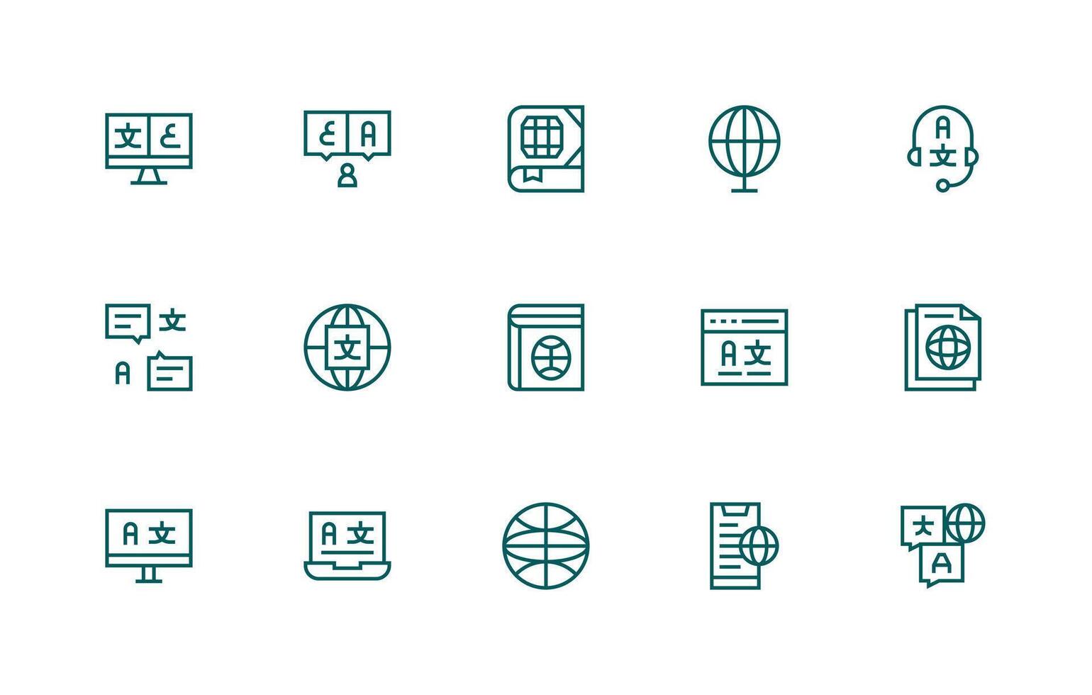 Multilingual Design Icons featuring 15 in Regular Line Style Neutral Style Icons for Any Project vector