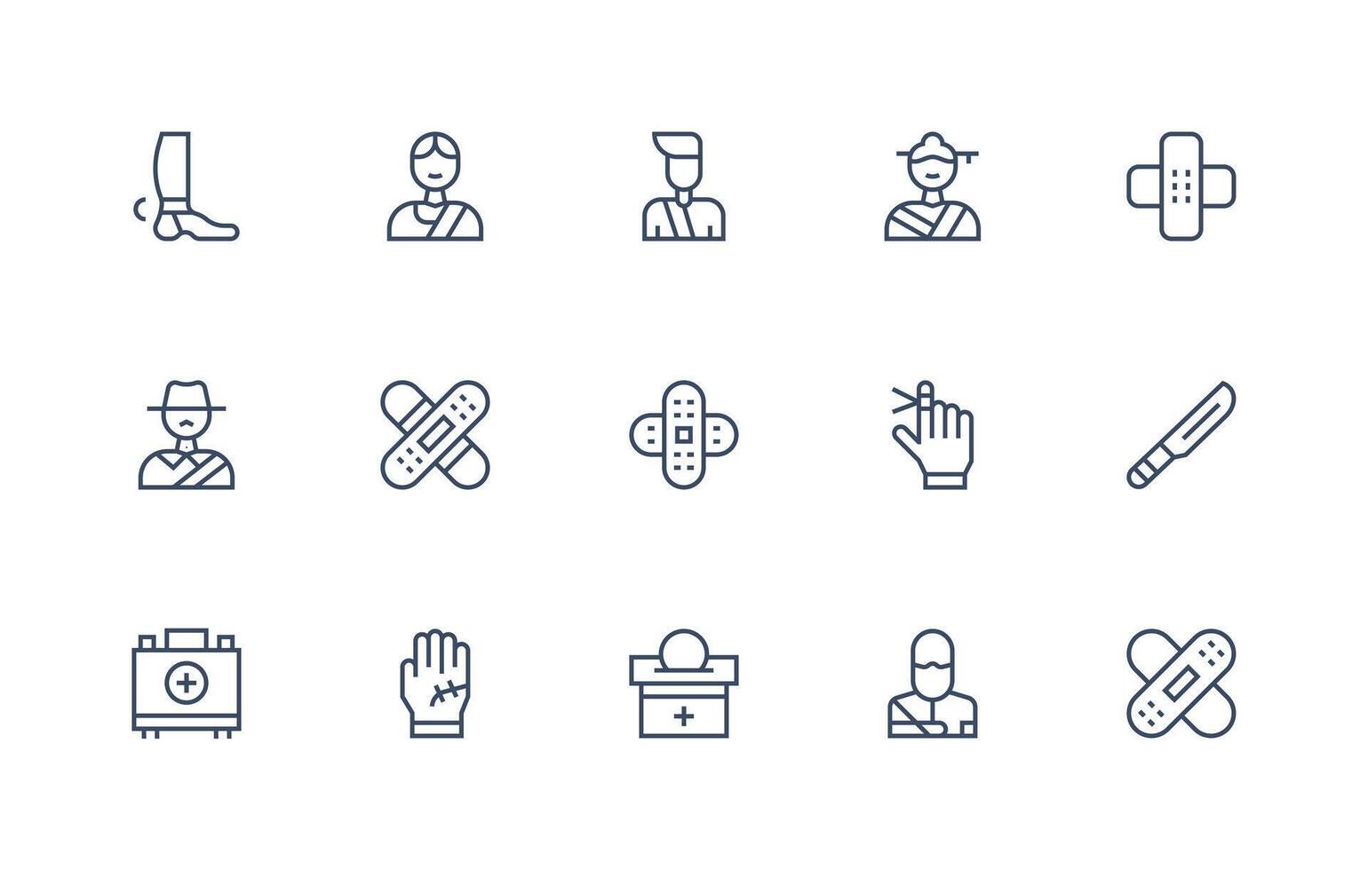 Bandage Icon Set with 15 Regular Line Graphics Essential Icons for Rapid UI Building vector