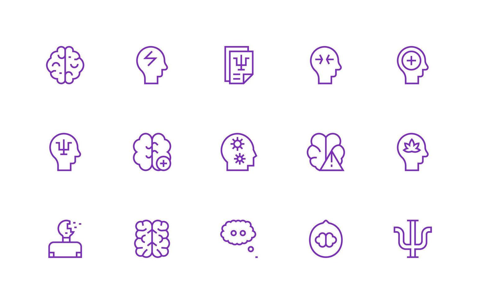 Mental Icon Set with 15 Regular Line Graphics Customizable Icon Series for Mobile Screens vector