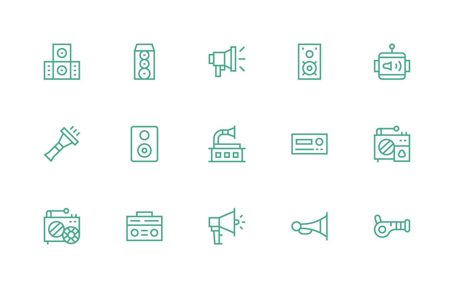 Sound System Set with 15 Regular Line Icons Simple Icons for Interface and Wireframes vector