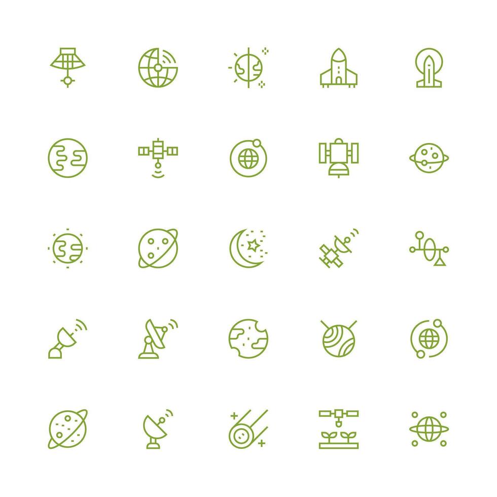 Satellite Design Icons featuring 25 in Medium Stroke Outline Style Simple Icons for Interface and Wireframes vector