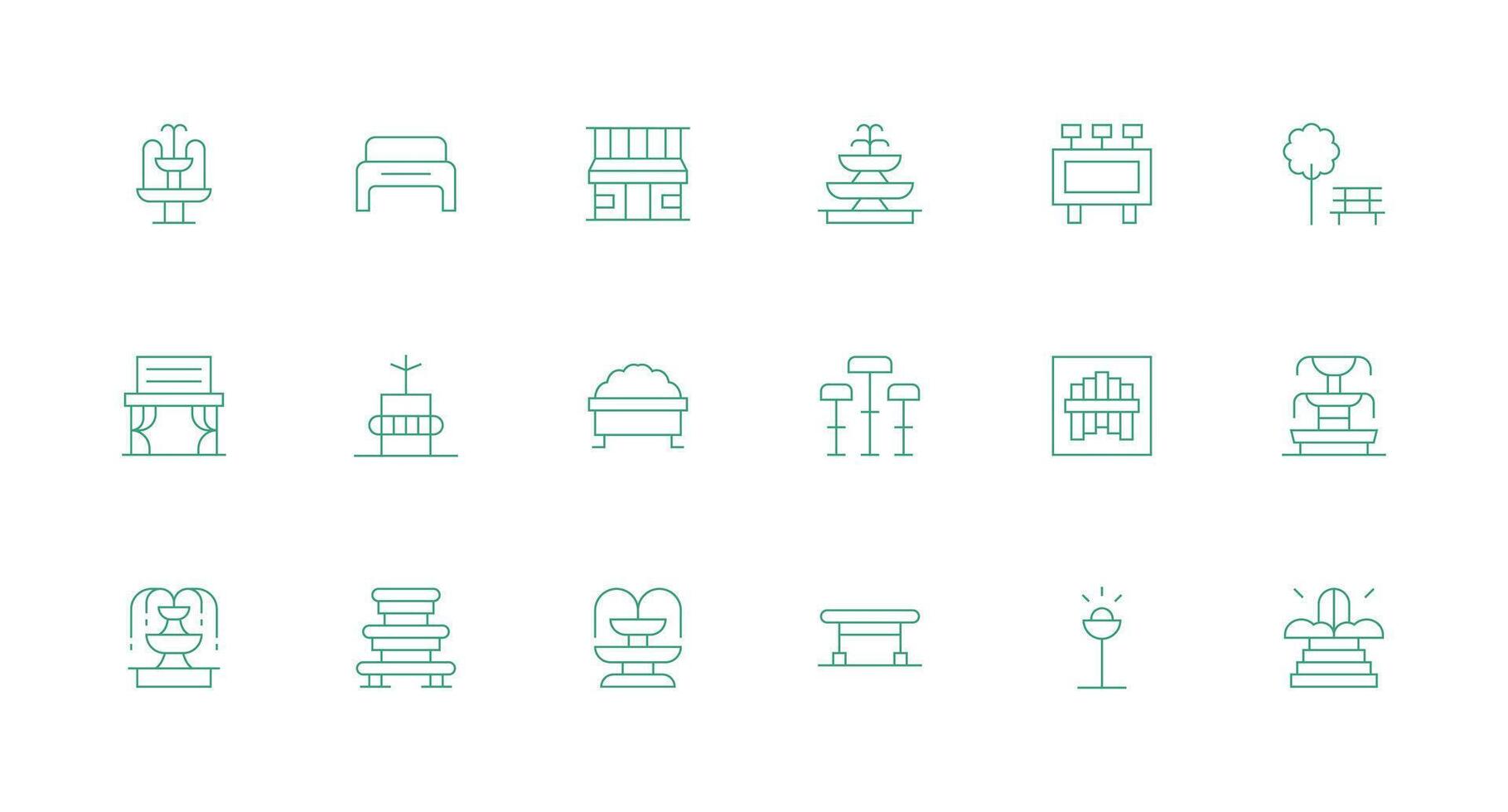 Minimal Line Style Public Space Icons with 18 Vectors UI-Ready Icon Collection
