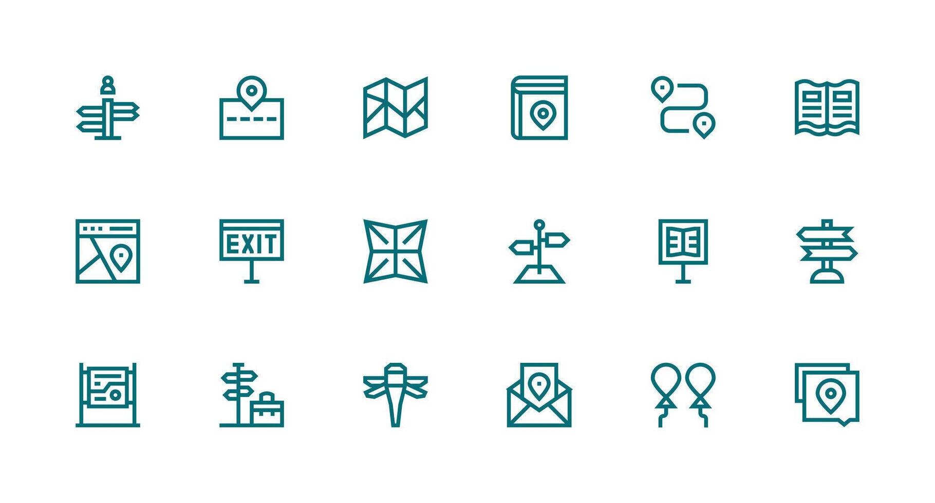18 Icons for Directions in Strong Stroke Line Format Complete Icon Set for Mobile Apps Free Vector