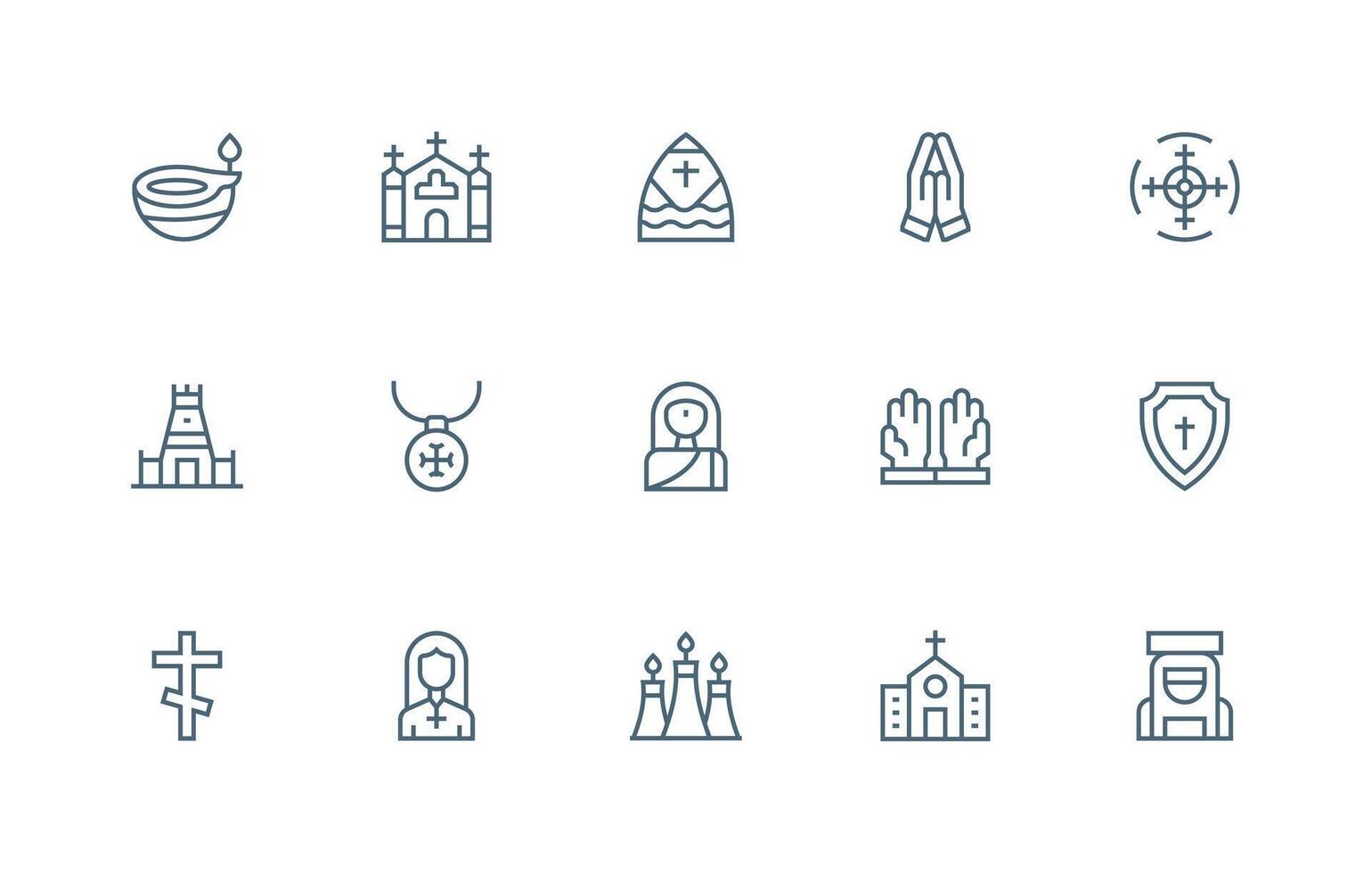 Religious Icon Set with 15 Regular Line Icons Icon Set for Web vector
