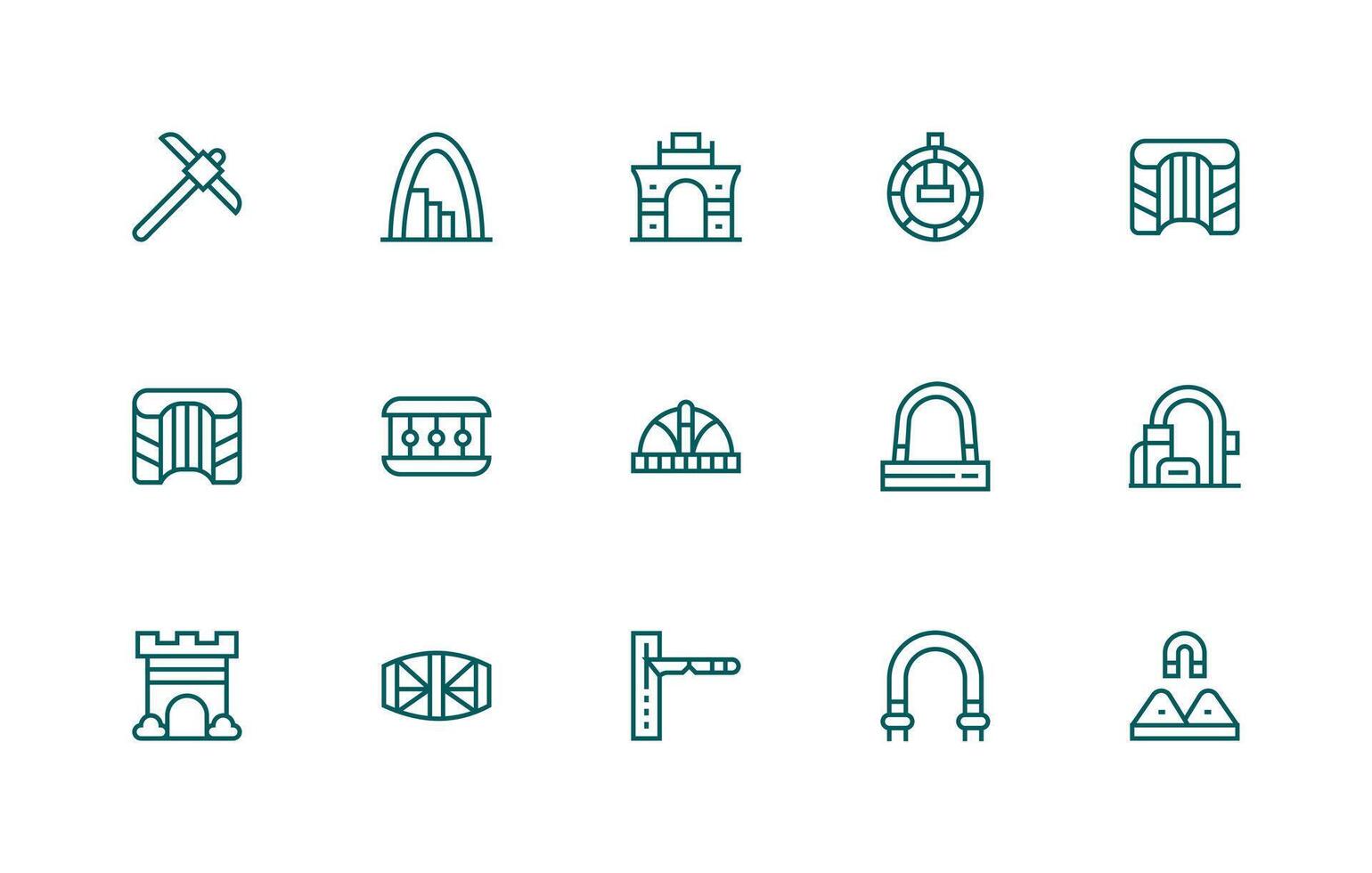 Tunnel Visual Pack containing 15 Regular Line Icons Sharp Icons for Presentations vector