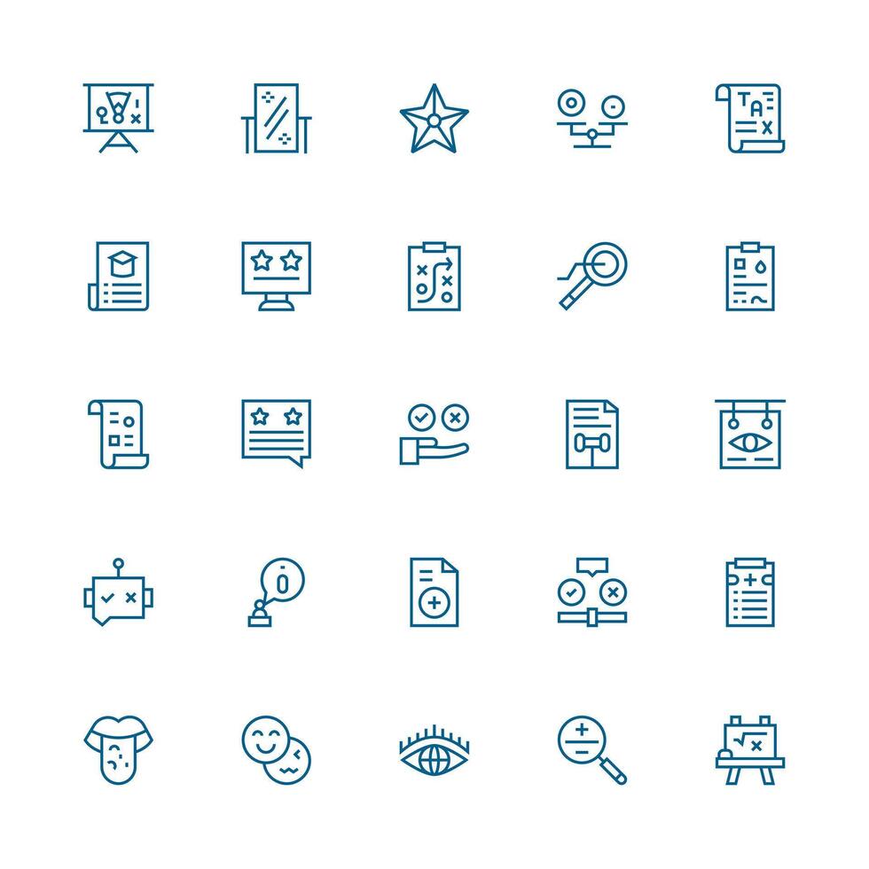 Assessment Design Icons featuring 25 in Medium Stroke Outline Style Icon Set for Projects Free Vector