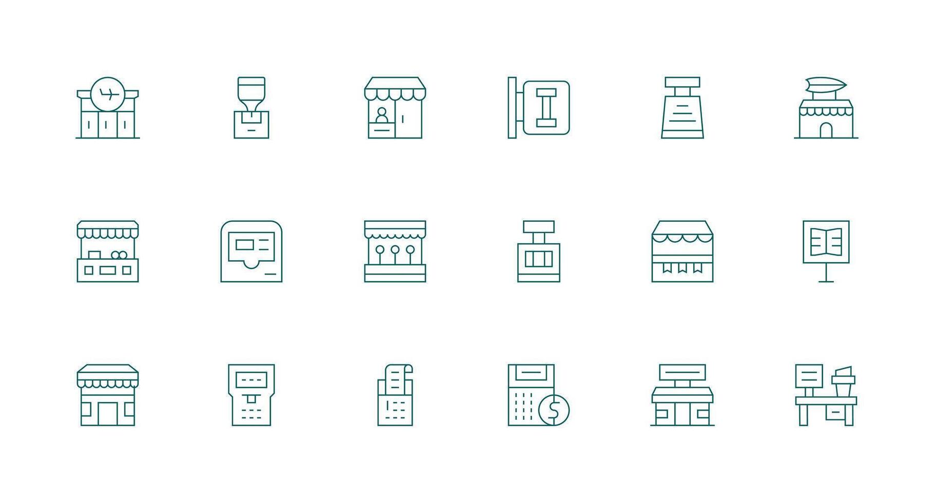 Kiosk Design Icons featuring 18 in Minimal Line Style Icon Pack for UI vector