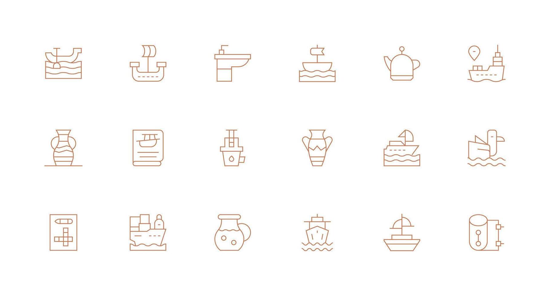Vessel Icon Set with 18 Minimal Line Graphics Minimal Icon Set for Interface Projects vector