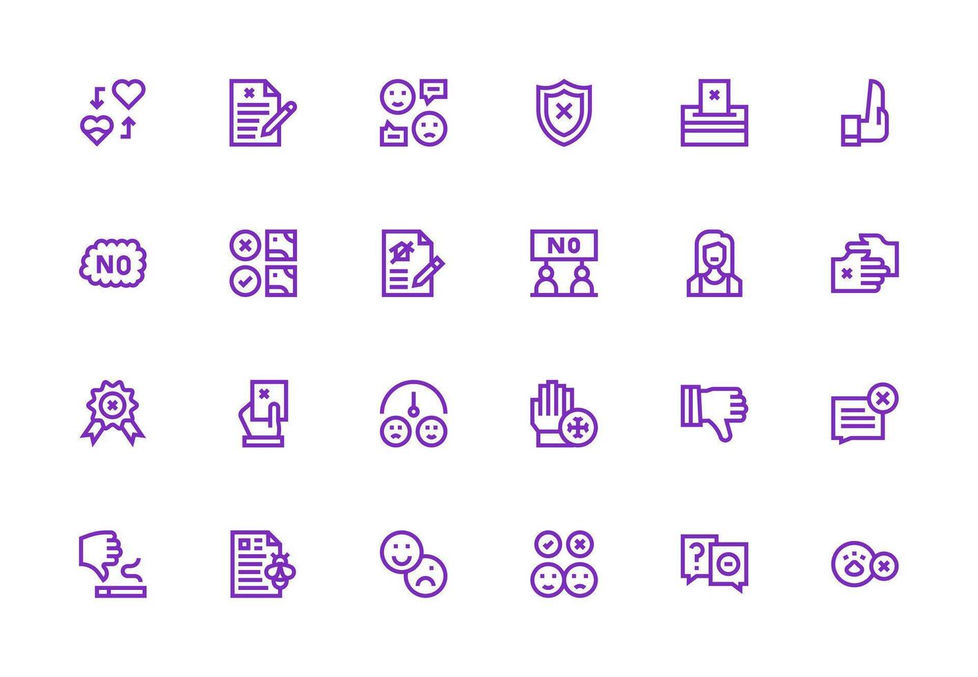Disapproval Visual Pack containing 24 Thick Line Line Icons Flexible Icon System for Web Interfaces vector