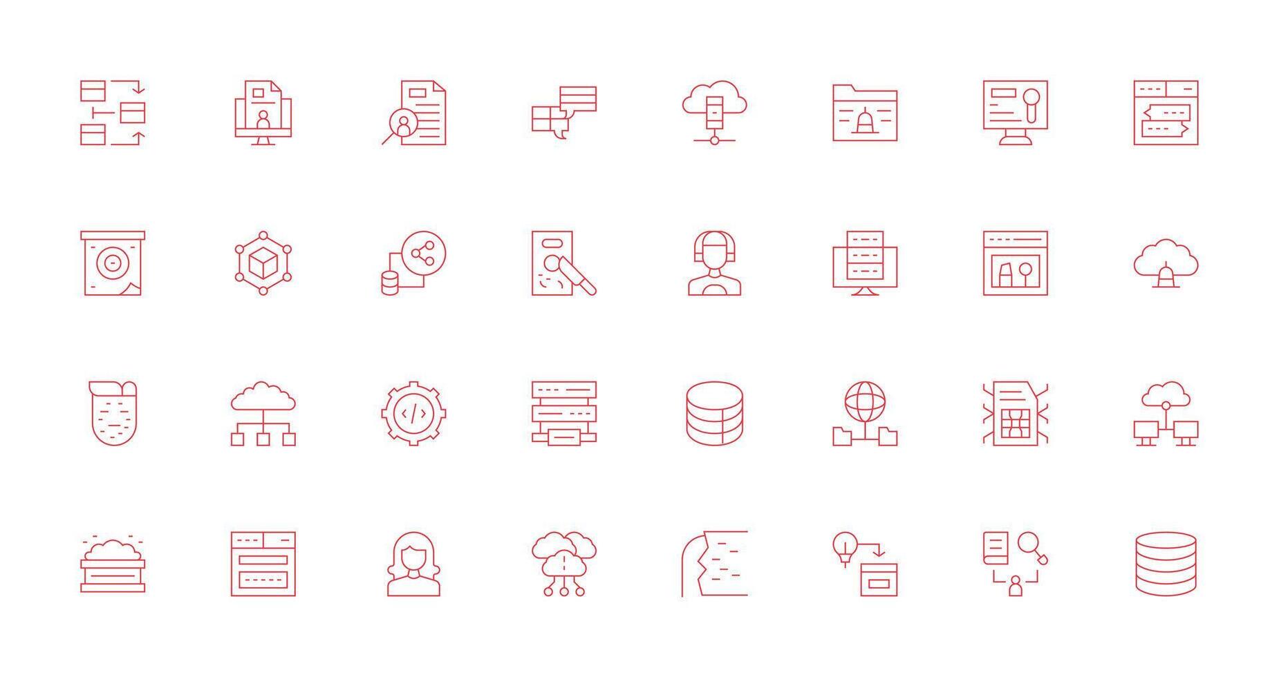 32 Thin Line Style Icons from Database Collection Complete Icon Bundle for Web Design Free Vector