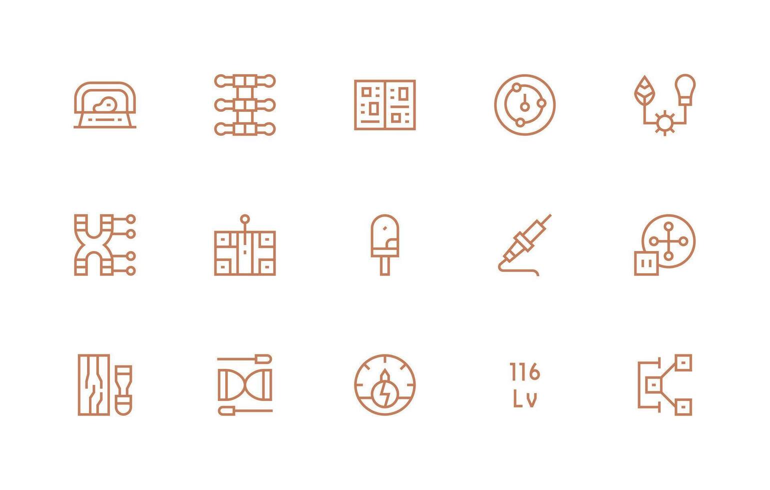 Circuit Icon Set with 15 Regular Line Graphics Clear and Concise Icon Set Collection vector