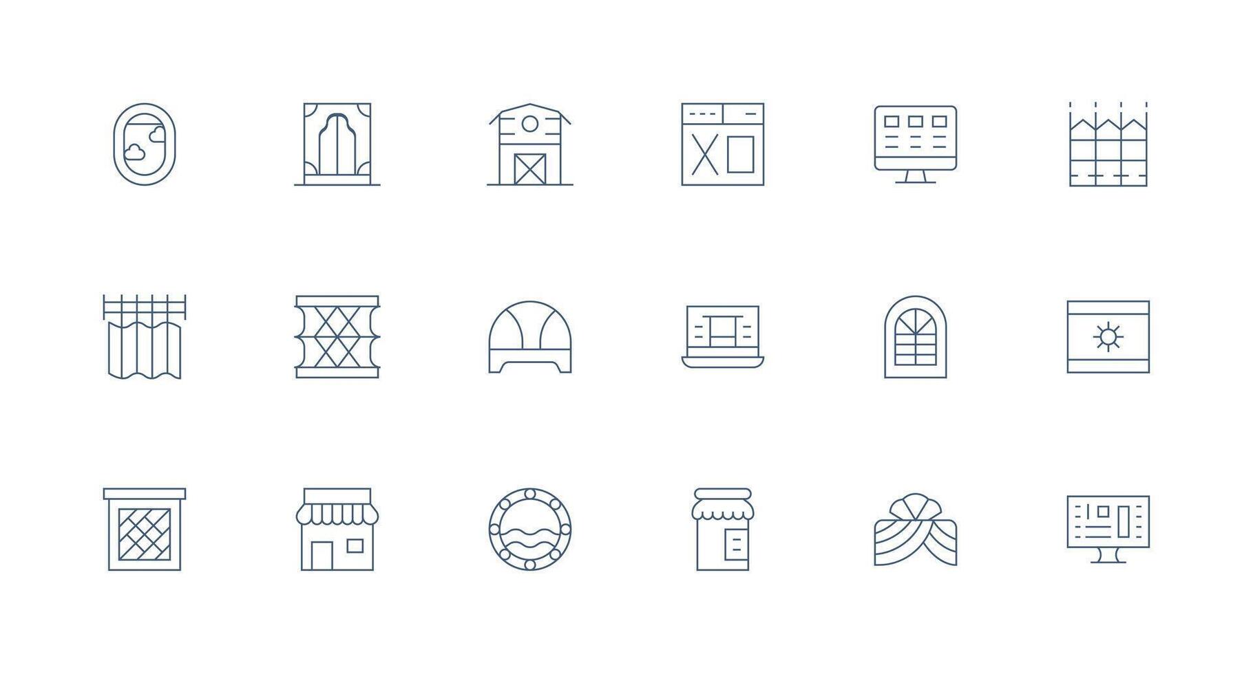 Window Design Icons featuring 18 in Minimal Line Style Icon Pack for Various Themes vector