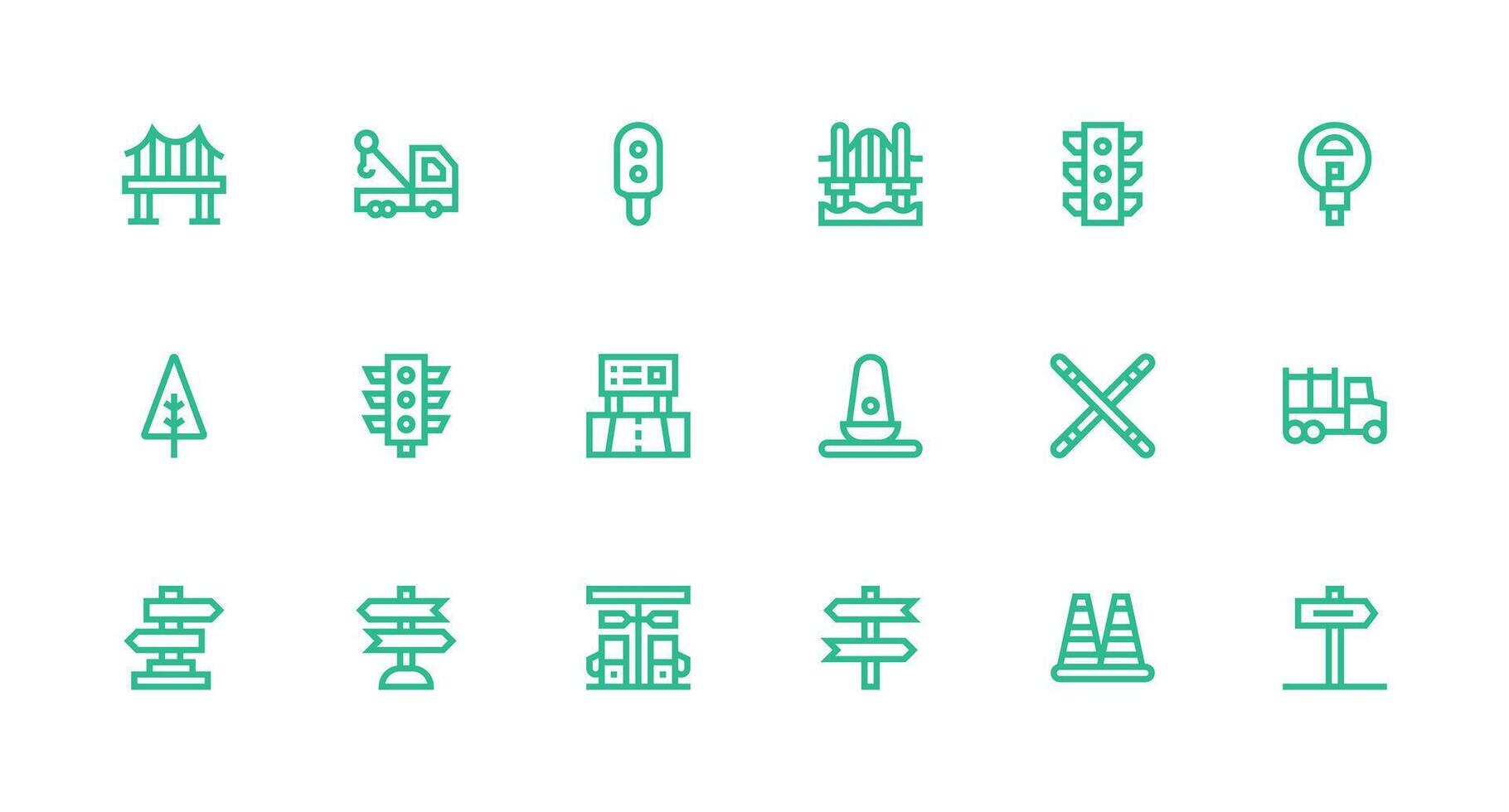 Road Design Icons featuring 18 in Strong Stroke Line Style Well-Structured Icons for Creative Use Free Vector