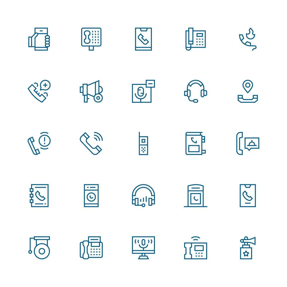 25 Medium Stroke Outline Icons for Call Graphics Neatly Designed Icons for Web Platforms Free Vector