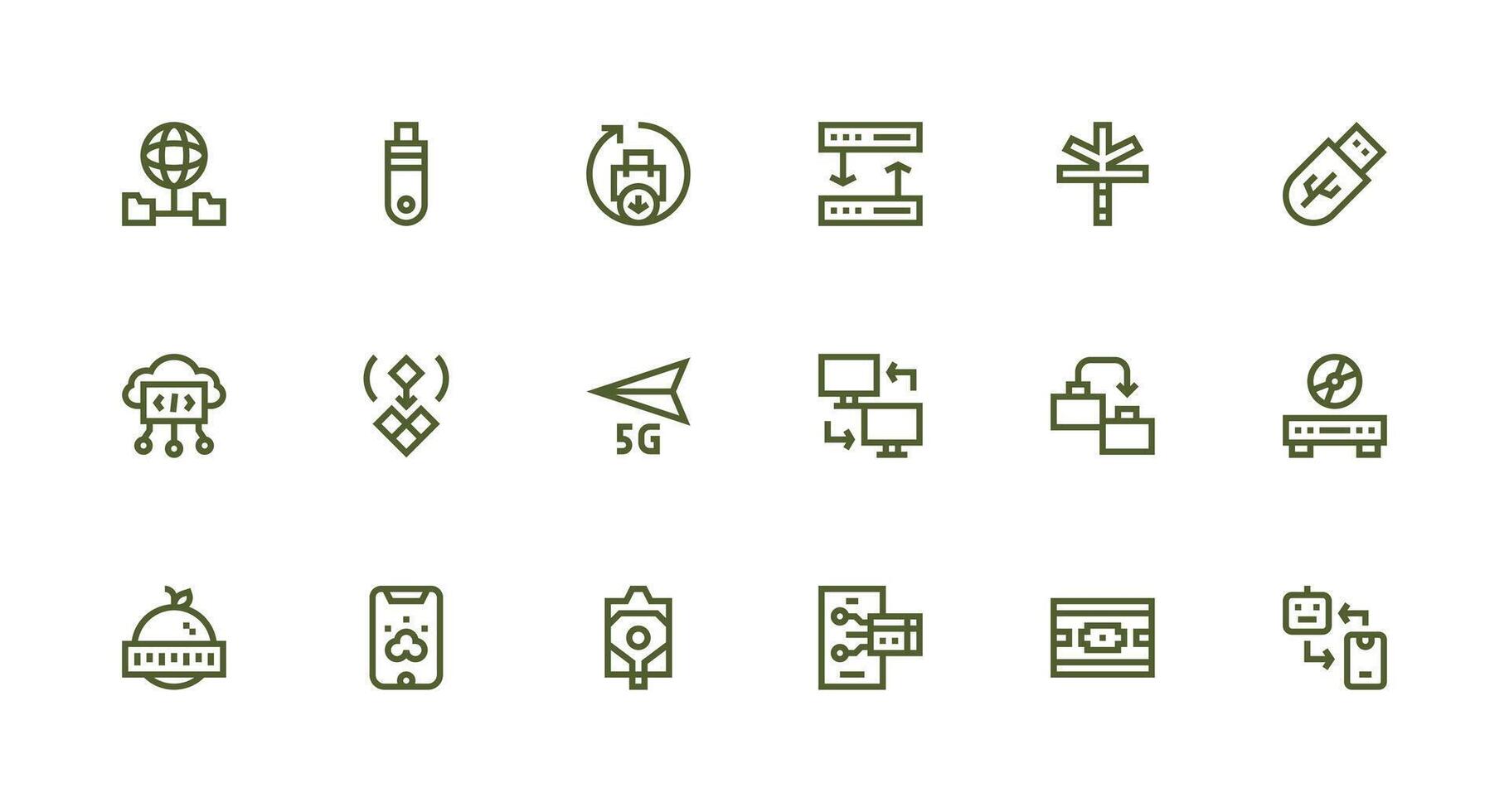 Strong Stroke Line Style Data Transfer Icons with 18 Vectors UI-Ready Icon Collection