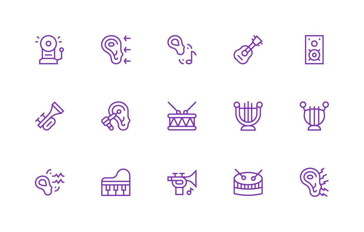 Acoustic Set with 15 Regular Line Icons Complete Icon Bundle for Web Design vector