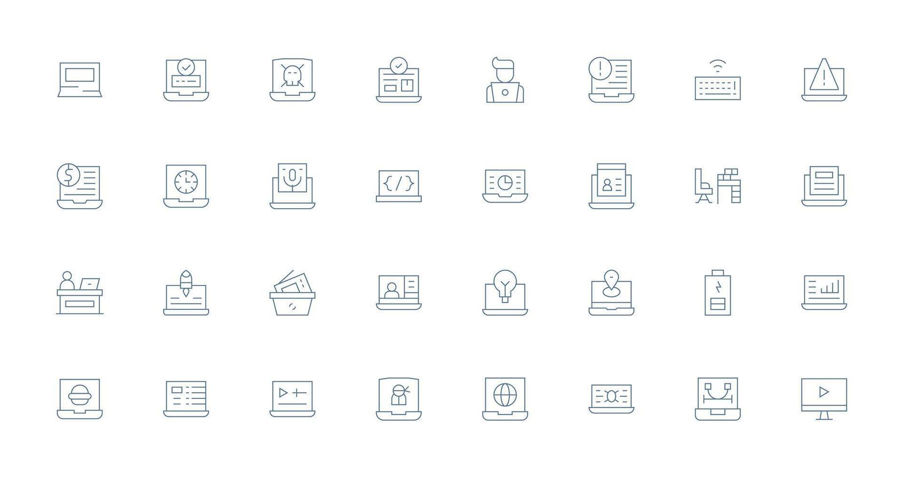 Laptop Icon Collection with 32 Thin Line Designs Neatly Designed Icons for Web Platforms Free Vector