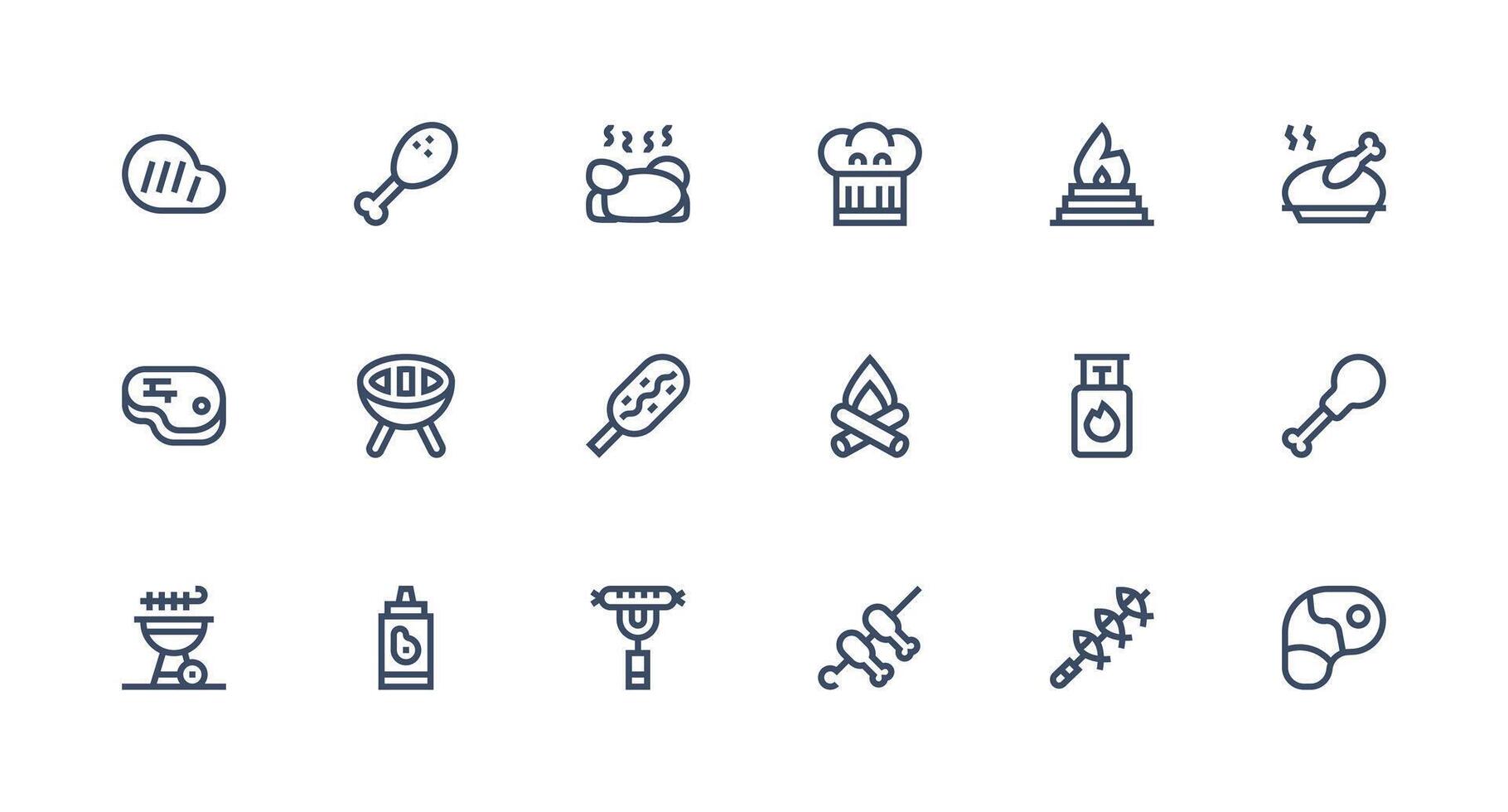 Barbecue Icon Set with 18 Strong Stroke Line Graphics Clean Icon Collection for Web Use vector