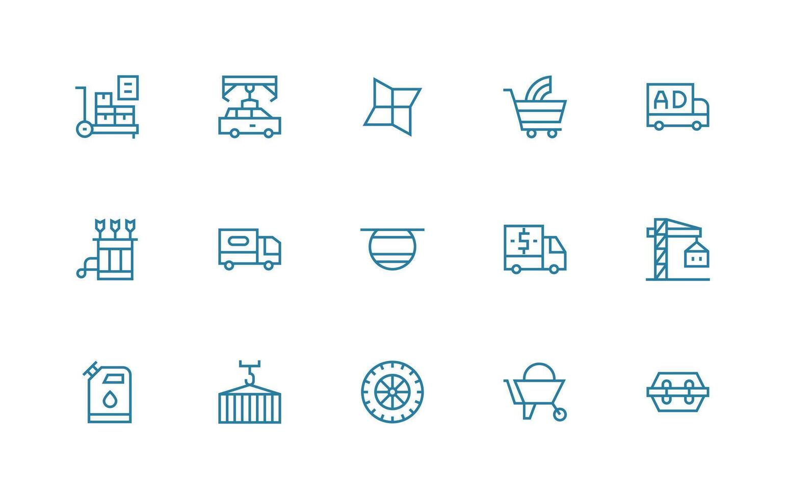 Transporting Icon Set with 15 Regular Line Graphics Icon Pack Free Vector