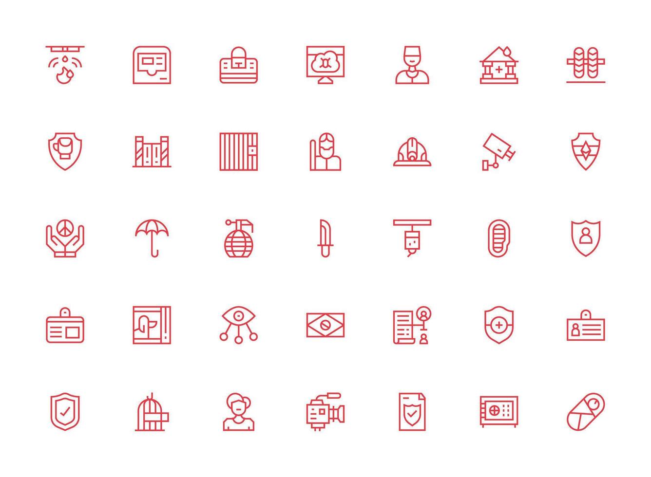 Security Icon Collection with 35 Regular Clean Line Designs Simple Icons for Interface and Wireframes vector