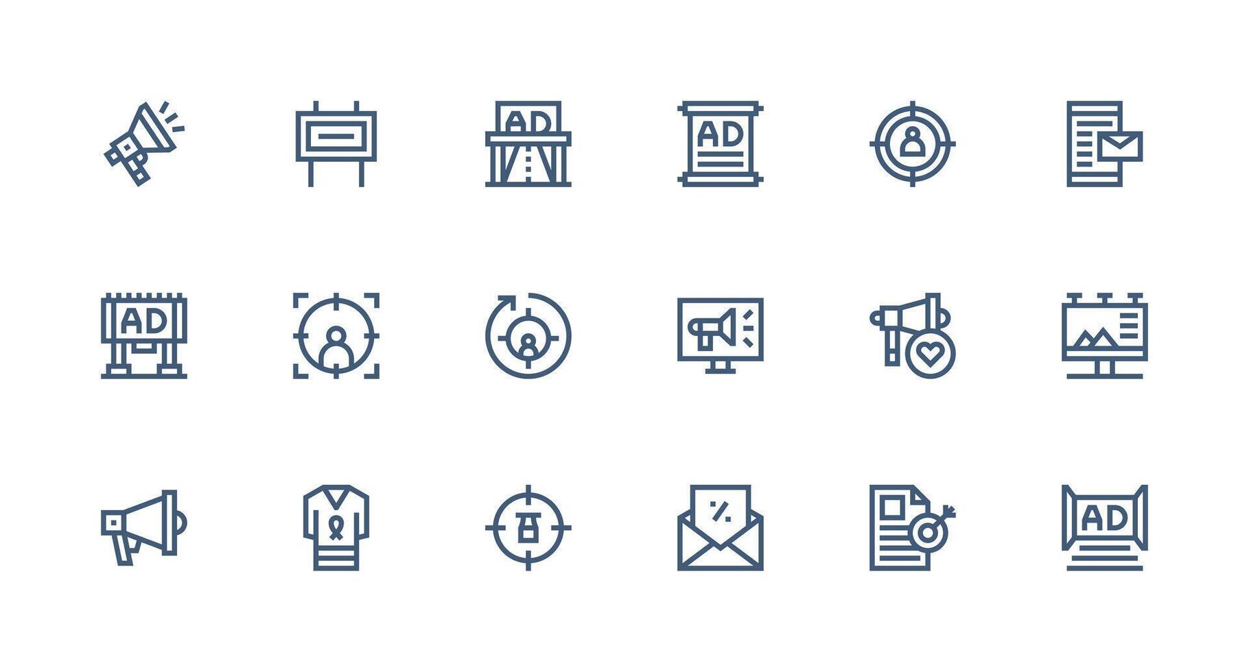 18 Strong Stroke Line Style Icons from Campaign Collection Complete Icon Bundle for Web Design Free Vector
