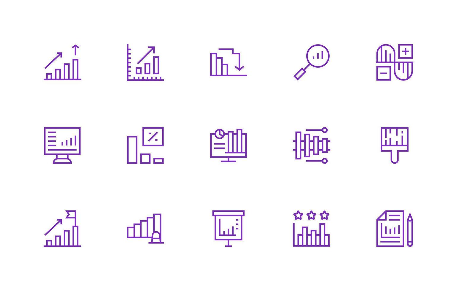 Bar Graph Visual Pack containing 15 Regular Line Icons Essential Icons for Rapid UI Building vector