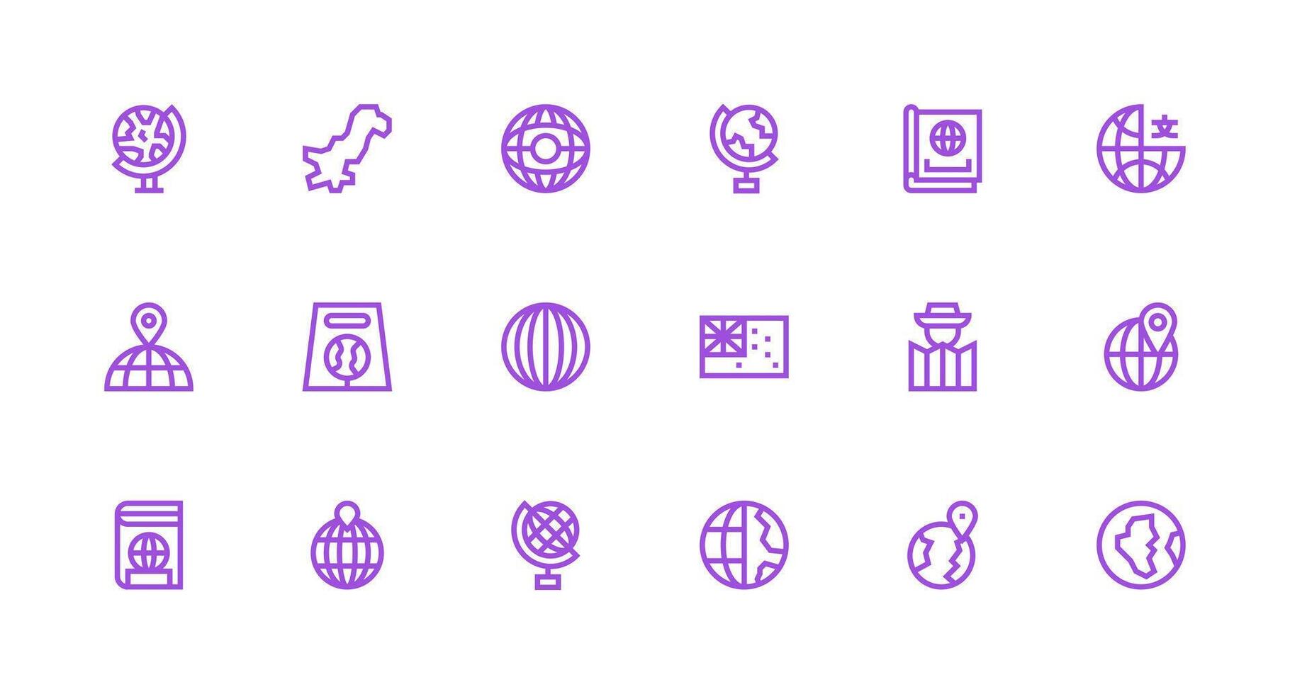 18 Strong Stroke Line Vectors for World Map Theme Balanced Icon Set for Functional Design Free Vector